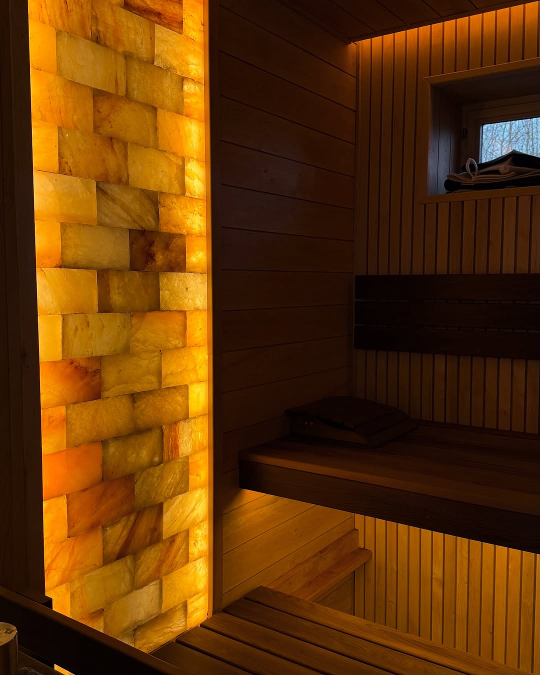 Размеры помещения:2,0 х 2,40 м.Материалы отделки:Вагонка реечная Lite из ольхи, 15*61 мм.Полок из ольхи, 26*90 мм.Элементы дизайна:Контурная подсветка.Гималайская соль.Об..