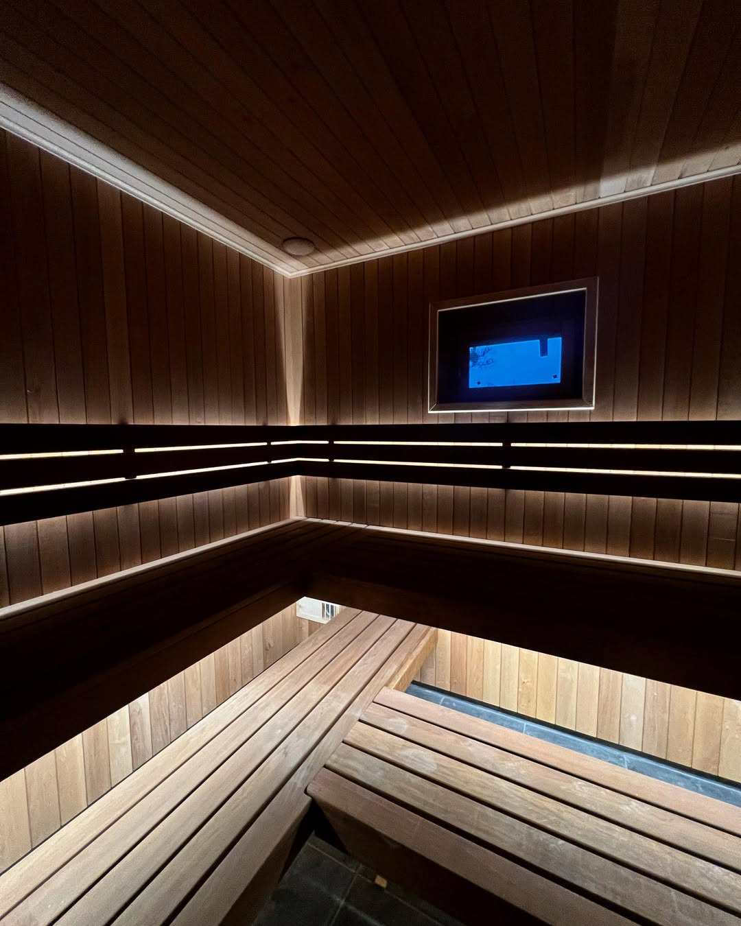 Материалы отделки:Вагонка STS из ольхи, 15*120.Вагонка реечная Мини из термо ольхи, 15*45.Полок из термо липы, 26*90.Элементы дизайна:Панно из можжевельника.Оборудование:..